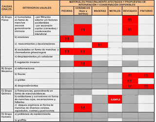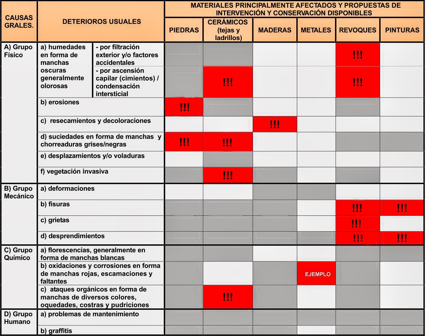 Como se mencionó anteriormente, los chalecitos poseen sus valores condensados principalmente en los frentes mediante el trabajo de piedras, maderas, ladrillos, revoques, metales y pinturas. Con el tiempo, estos materiales se deterioran y resulta necesario realizar reparaciones/ intervenciones y mantenimientos/ actividades de conservación. Por eso, el Área municipal patrimonial brinda ayudas para que el usuario conozca las intervenciones a realizar por los arquitectos/constructores, o bien, para que sepa cómo realizar el mantenimiento. Asimismo, esta oficina cuenta con un Manual realizado por quien escribe para abordar estas tareas a través el desarrollo de cada material en la ciudad y los grupos de deterioros-diagnósticos relacionados junto a las posibles soluciones. A continuación se presenta un ejemplo de asesoramiento para un tipo de deterioro en las maderas pero es necesario observar la imagen superior para comprender las múltiples recomendaciones factibles de obtener de acuerdo a los casos más usuales (resaltados en gris) y apremiantes en el barrio (resaltados en rojo).
