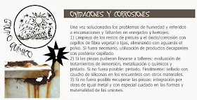 Como se mencionó anteriormente, los chalecitos poseen sus valores condensados principalmente en los frentes mediante el trabajo de piedras, maderas, ladrillos, revoques, metales y pinturas. Con el tiempo, estos materiales se deterioran y resulta necesario realizar reparaciones/ intervenciones y mantenimientos/ actividades de conservación. Por eso, el Área municipal patrimonial brinda ayudas para que el usuario conozca las intervenciones a realizar por los arquitectos/constructores, o bien, para que sepa cómo realizar el mantenimiento. Asimismo, esta oficina cuenta con un Manual realizado por quien escribe para abordar estas tareas a través el desarrollo de cada material en la ciudad y los grupos de deterioros-diagnósticos relacionados junto a las posibles soluciones. A continuación se presenta un ejemplo de asesoramiento para un tipo de deterioro en las maderas pero es necesario observar la imagen superior para comprender las múltiples recomendaciones factibles de obtener de acuerdo a los casos más usuales (resaltados en gris) y apremiantes en el barrio (resaltados en rojo).